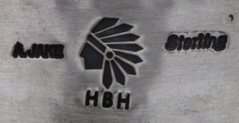 • Artist Hallmark:   "A. JAKE, HBH" (denoting "Heavy By Hand" design) - hand stamped on back side of bracelet.