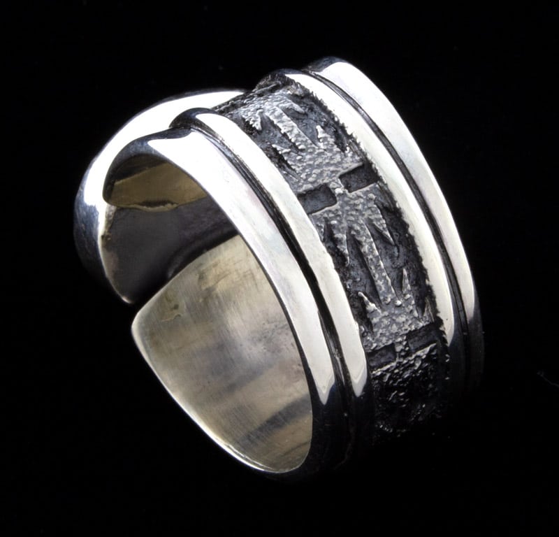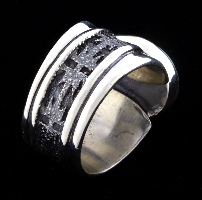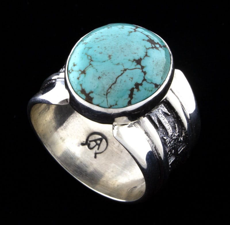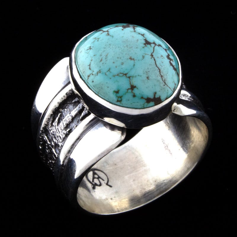 • Artist Hallmark:   "A J" (hand stamped with artist's personal horseshoe insignia on back side of ring shank)