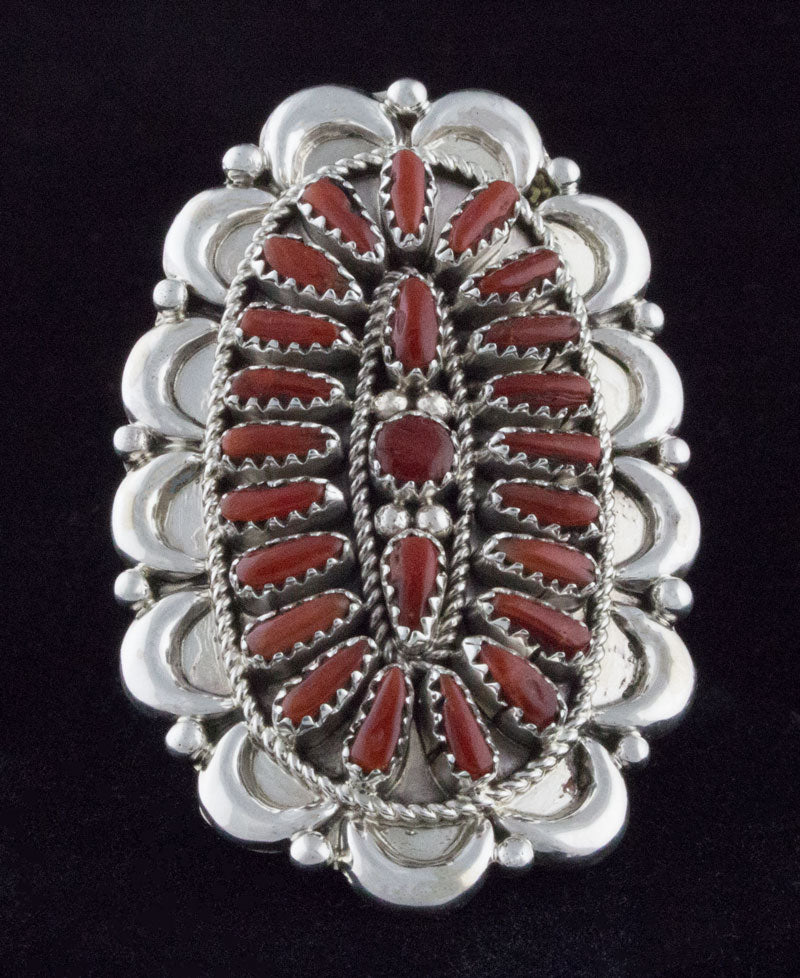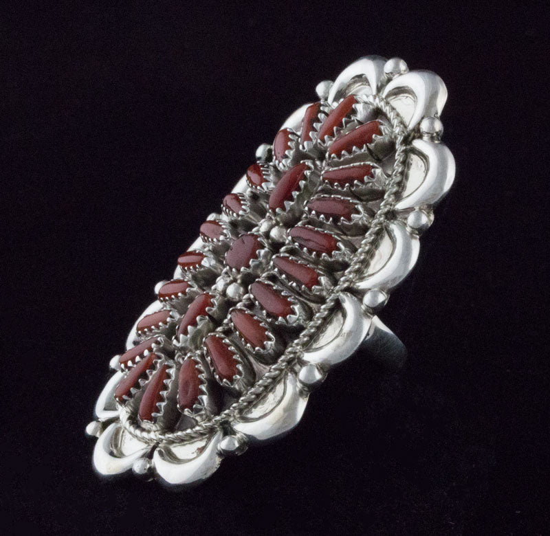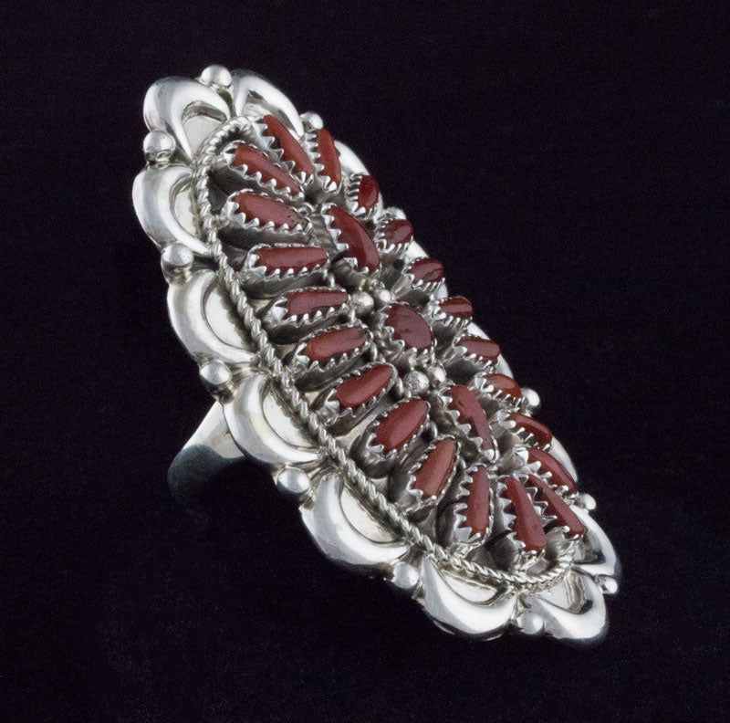 Size 9.25 Sterling Silver Ring With A Cluster Of 24 Natural Mediterranean Coral Stones.  Masterfully Handmade And Designed By Navajo Artist JAZ WILSON.