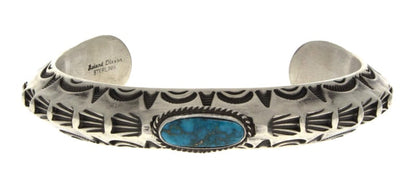 "Old Style" Heavy Gauge Sterling Silver Triangulated Bracelet With "Fish Tail" Ends Set With A RARE Natural Morenci Turquoise Stone. Masterfully Handmade And Designed By Navajo Artist ROLAND DIXSON.