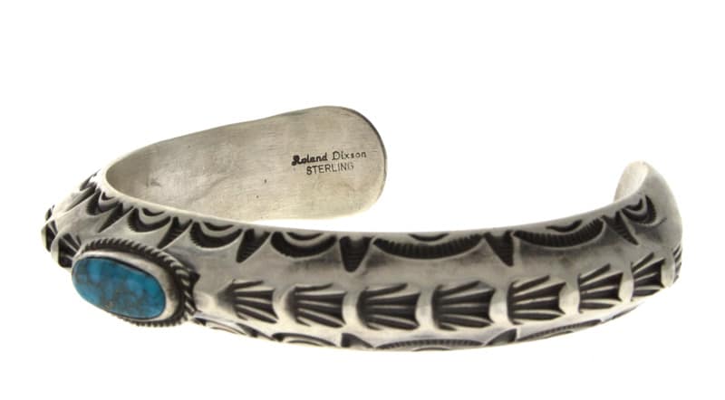 • Artist Hallmark:  "Roland Dixson"  (hand stamped on back side end of bracelet)