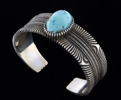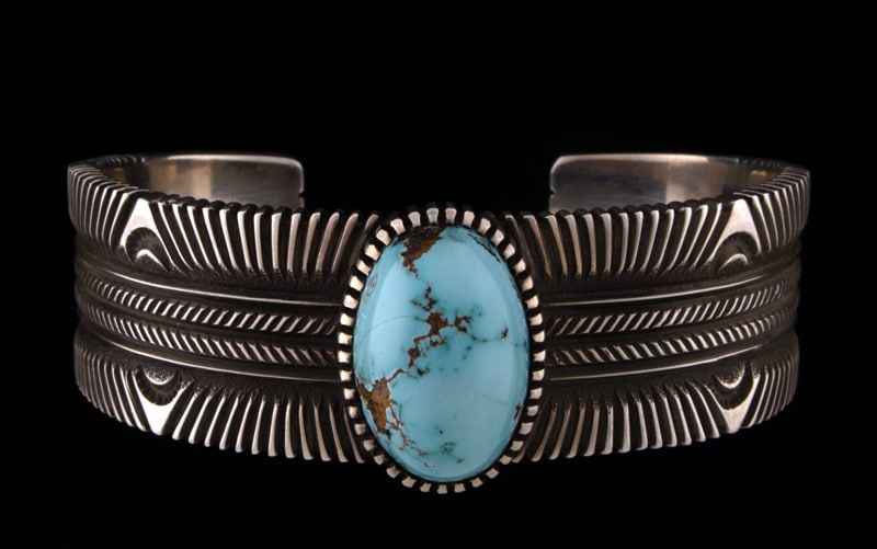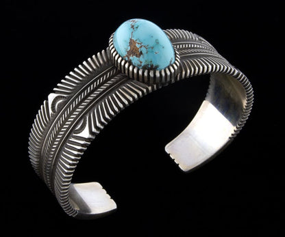 Sterling Silver Bracelet Set With A Natural Old Persian Dome Turquoise Stone. Masterfully Handmade And Designed By Deceased Navajo Artist RON BEDONIE.