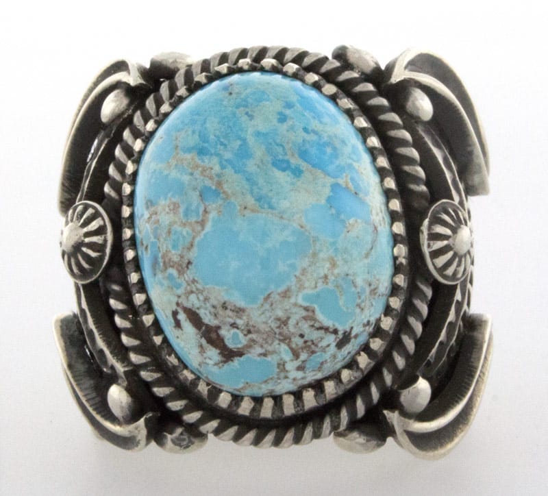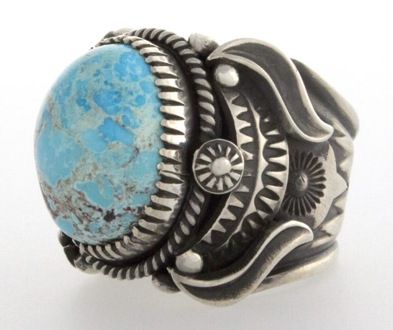 Size 9 "Old Style" Sterling Silver Ring Set With A Natural Persian Turquoise Stone.  Masterfully Handmade And Designed By Navajo Artist DELBERT GORDON.
