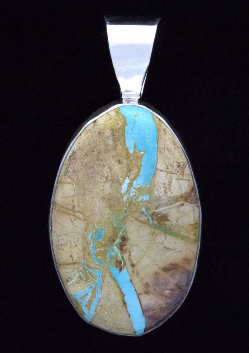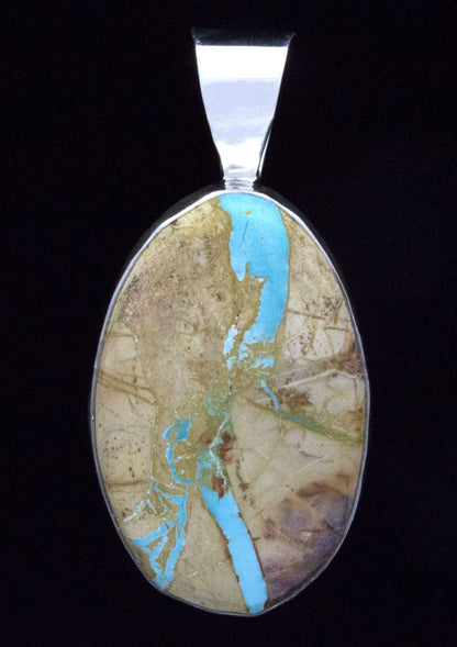 Sterling Silver Pendant Set With A Long Oval Shaped Natural Royston Boulder Turquoise Stone.  Masterfully Handmade And Designed By Navajo Artist LYLE PIASO.