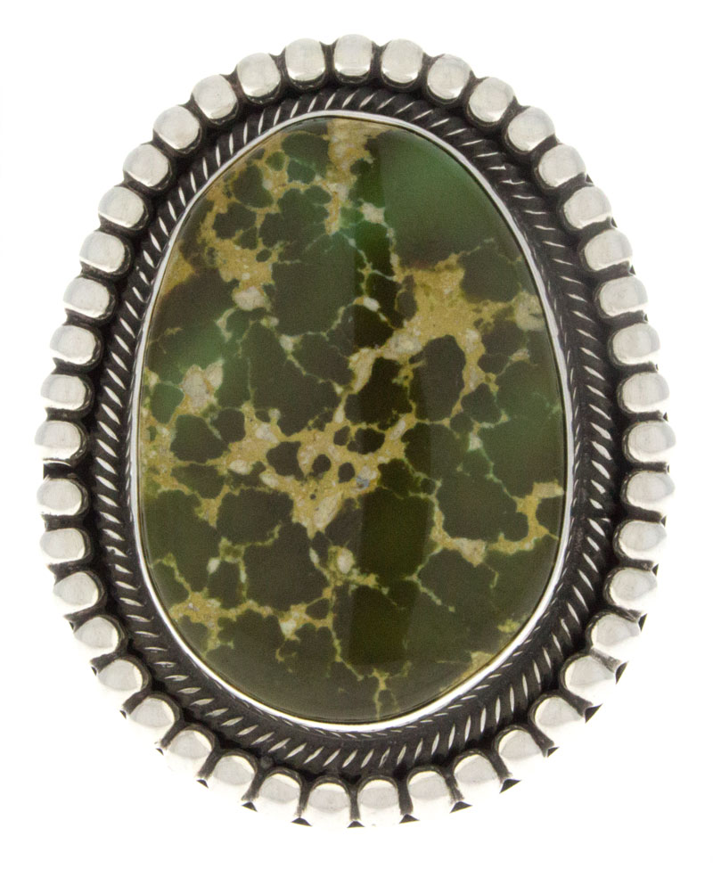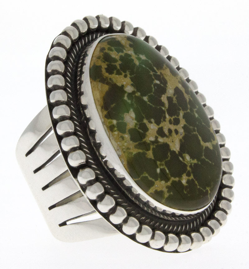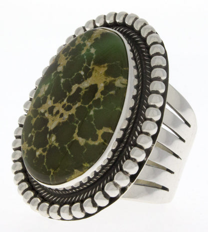 Size 9.25 Sterling Silver Ring Set With A Natural Royston Turquoise Stone.  Masterfully Handmade And Designed By Navajo Artist AKEE DOUGLAS.