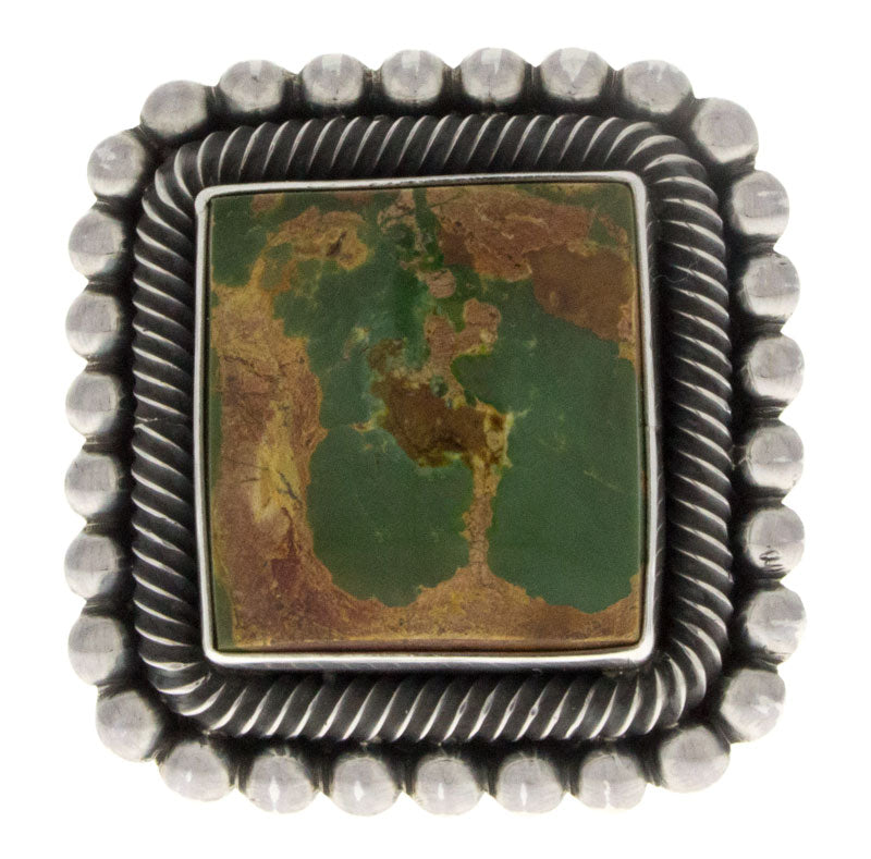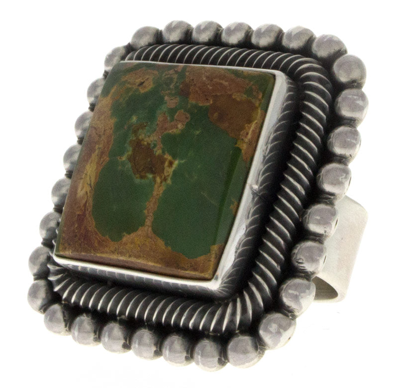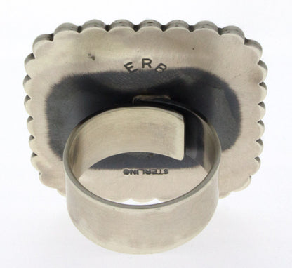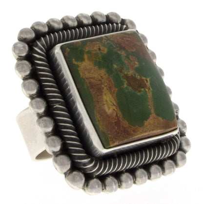 Size 9.5 Adjustable "Old Style" Sterling Silver Statement Ring Set With A Natural Royston Turquoise Stone.  Masterfully Handmade And Designed By Navajo Artist ERNEST ROY BEGAY.