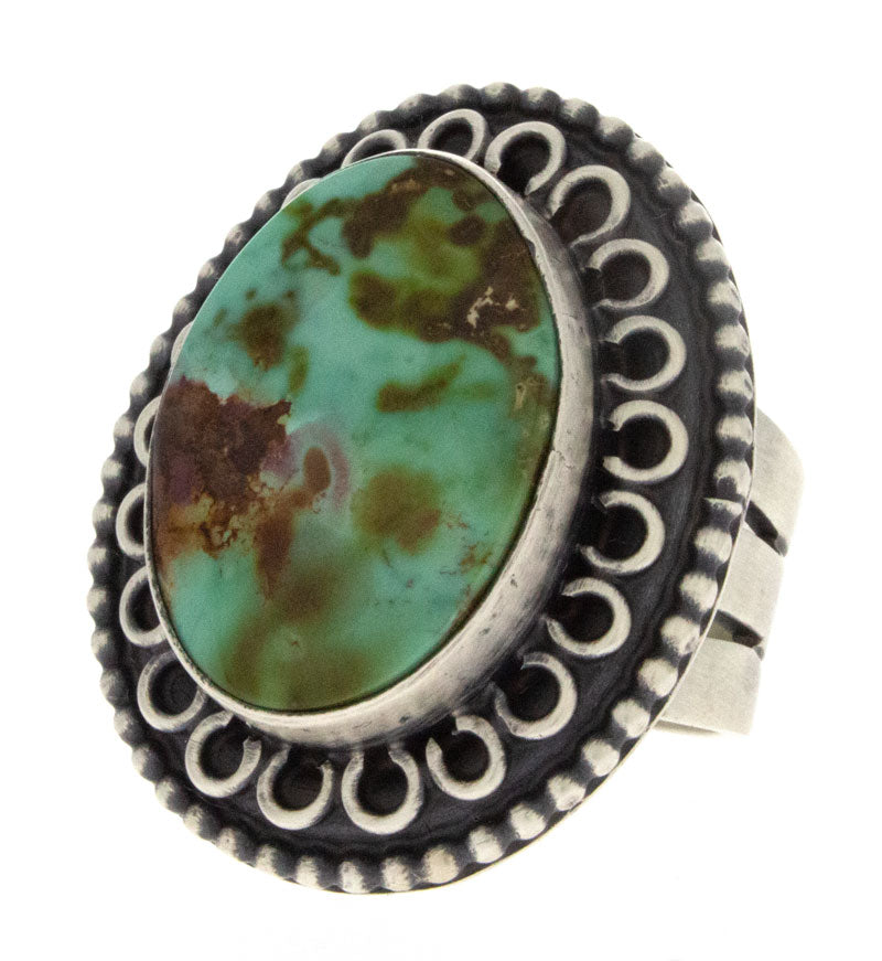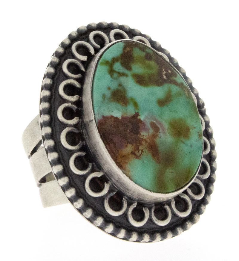 Size 7 "Old Style" Sterling Silver Ring Set With A Natural Royston Turquoise Stone.  Masterfully Handmade And Designed By Navajo Artist PHILBERT SECATERO.