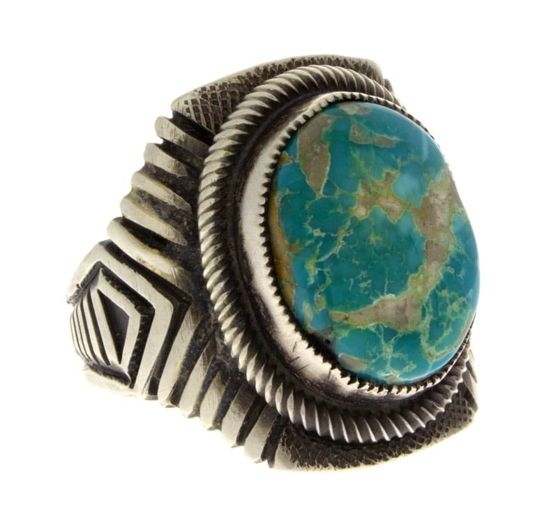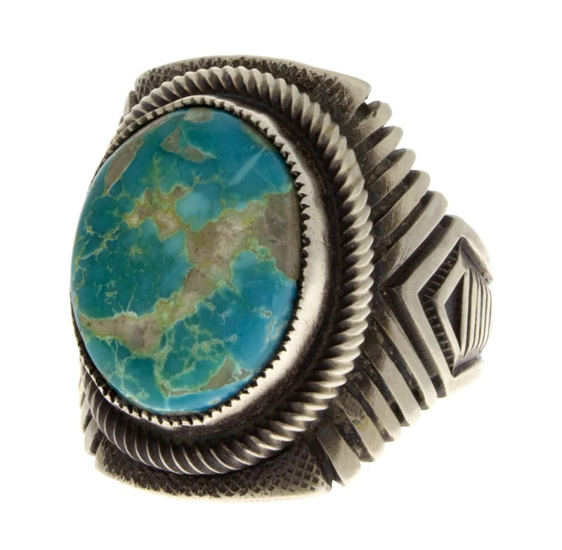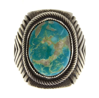 Size 10 Heavy Gauge "Old Style" Ingot Sterling Silver Ring Set With A Natural Royston Turquoise Stone.  Masterfully Handmade And Designed By Navajo Artist CALVIN MARTINEZ.