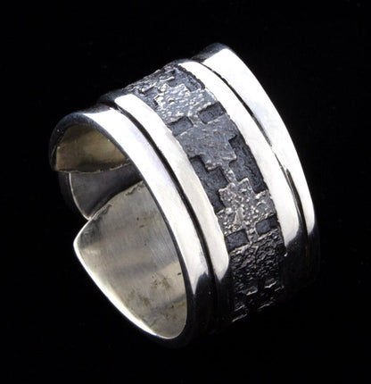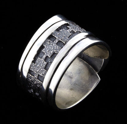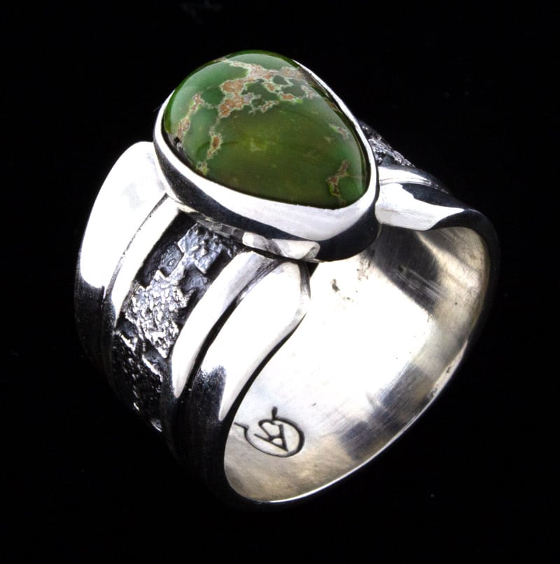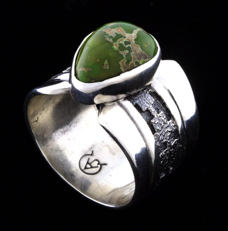 • Artist Hallmark: "A J" (hand stamped with artist's personal horseshoe insignia on back side of ring shank)