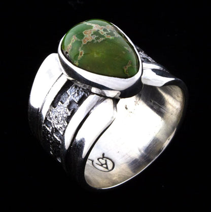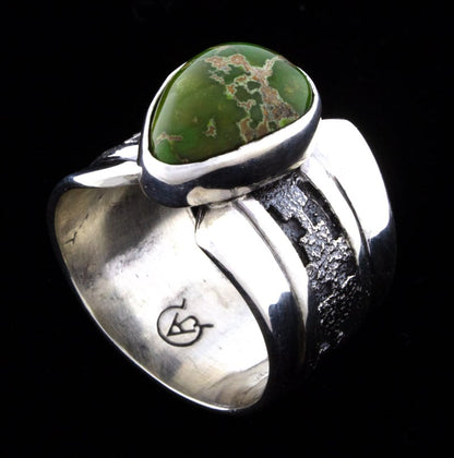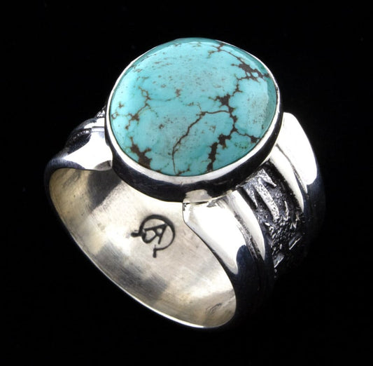 Size 8 Sterling Silver Ring Set With A Natural Royston Turquoise Stone. Masterfully Handmade And Designed By Navajo Artist AL JOE.