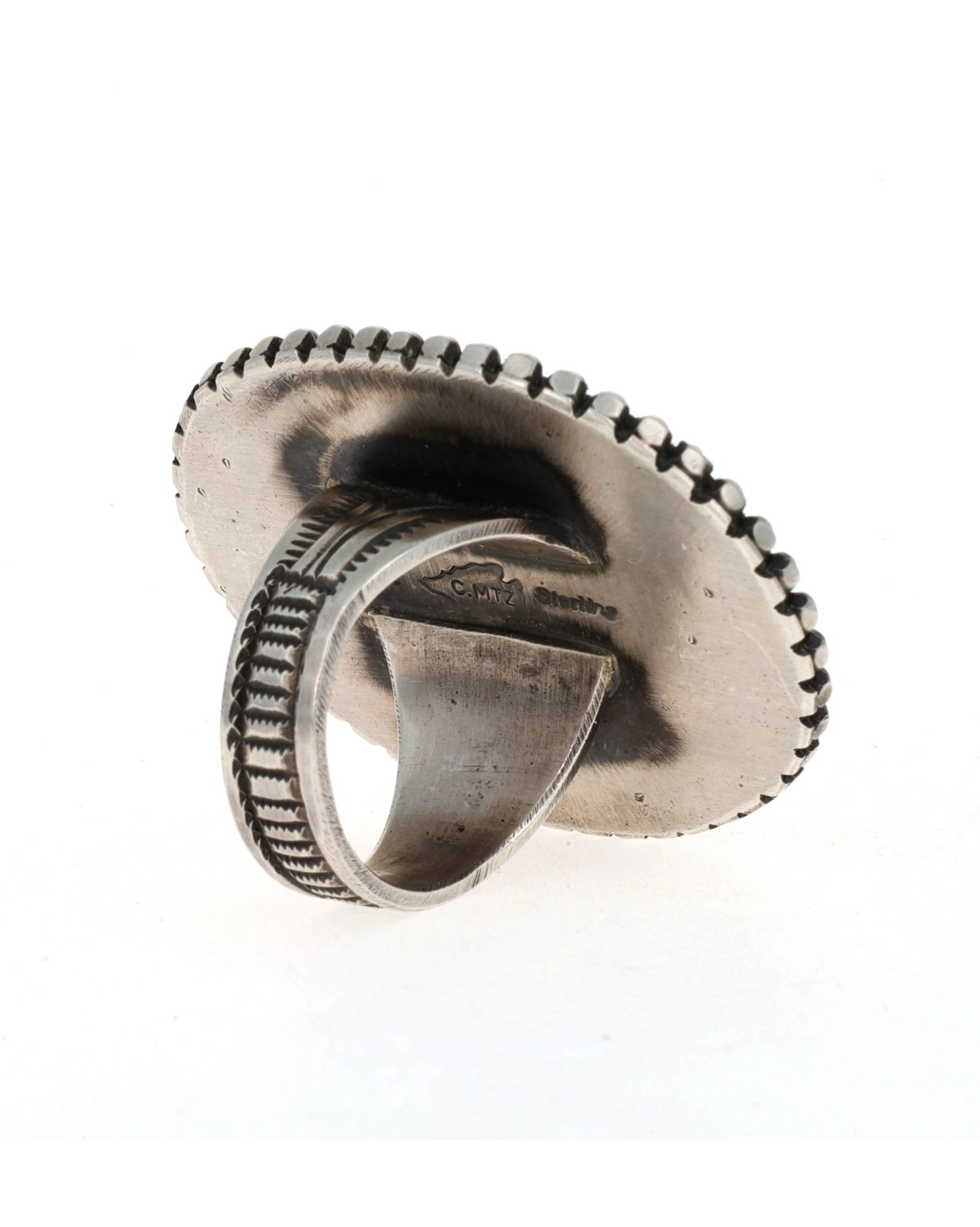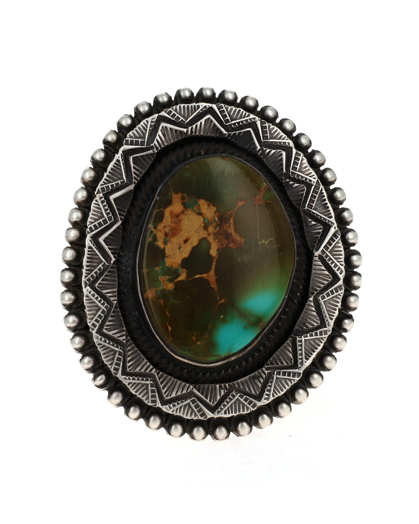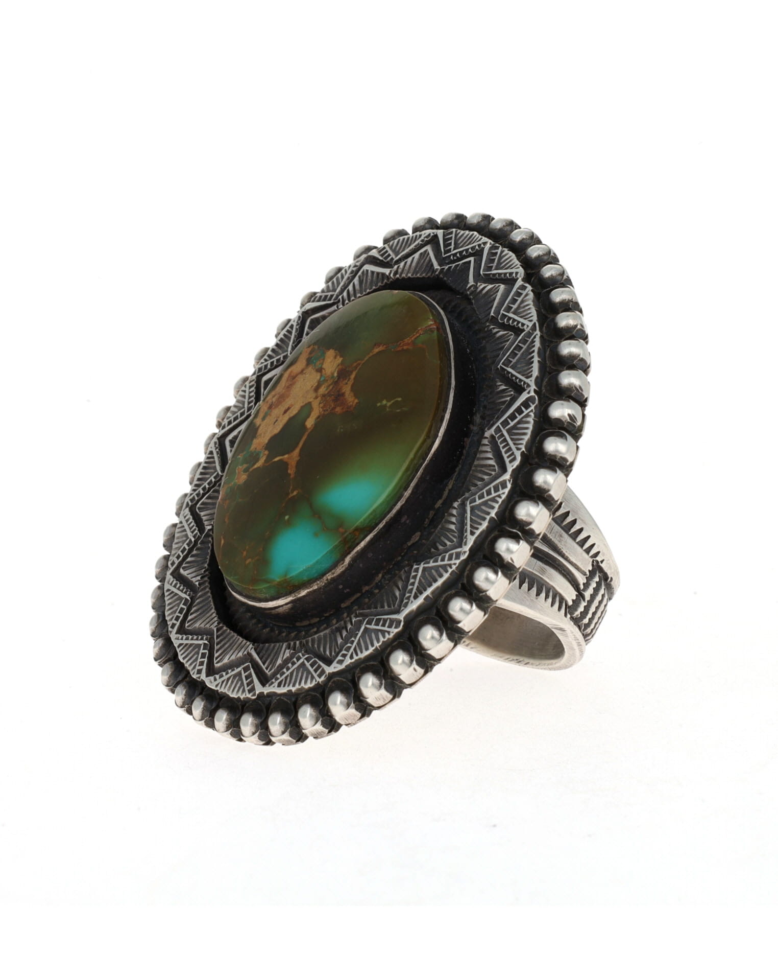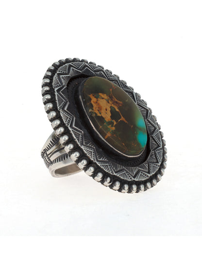 Size 9 "Old Style" Ingot Sterling Silver Statement Ring Set With An Impressive Natural Royston Turquoise Stone In A Shadowbox Design. Masterfully Handmade And Designed By Navajo Artist CALVIN MARTINEZ.