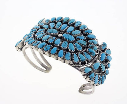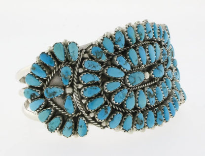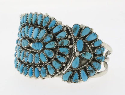 Sterling Silver Bracelet Set With A Cluster Of RARE Natural Sleeping Beauty Turquoise Petit Point Stones.  Masterfully Handmade And Designed By Navajo Artist JUSTINA WILSON.