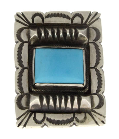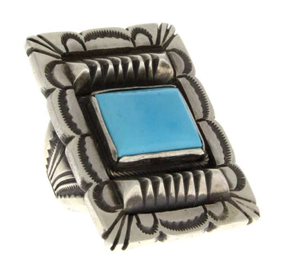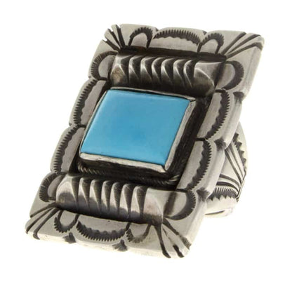 Size 9 Heavy Gauge "Old Style" Ingot Sterling Silver Ring Set With A RARE Natural Sleeping Beauty Turquoise Stone.  Masterfully Handmade And Designed By Navajo Artist CALVIN MARTINEZ.
