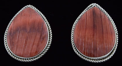 Post Style Sterling Silver Fat Pear Shaped Earrings Each Set With A Red Spiny Oyster Stone.  Masterfully Handmade And Designed By Santo Domingo Pueblo Artist DANIEL CORIZ.