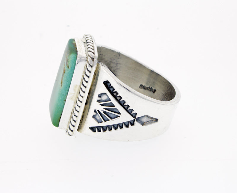 Size 12.5 Sterling Silver Ring Set With A Royston Turquoise Stone.  Masterfully Handmade And Designed By Navajo Artist HERMAN VANDEVER.
