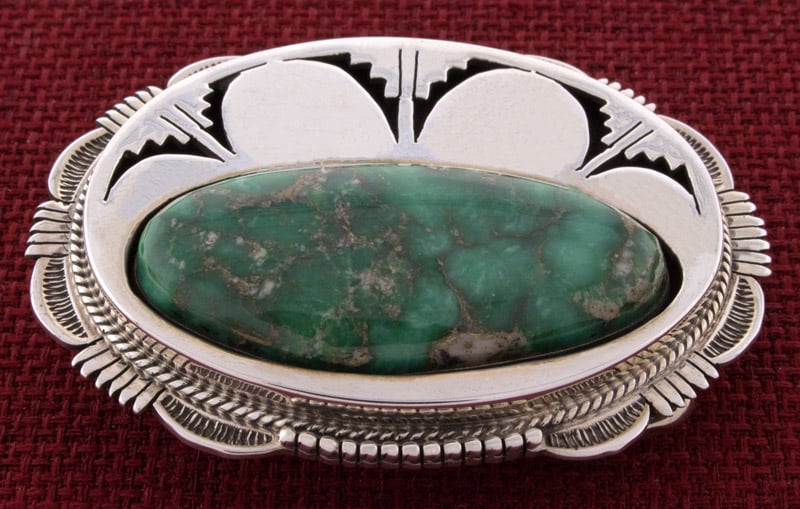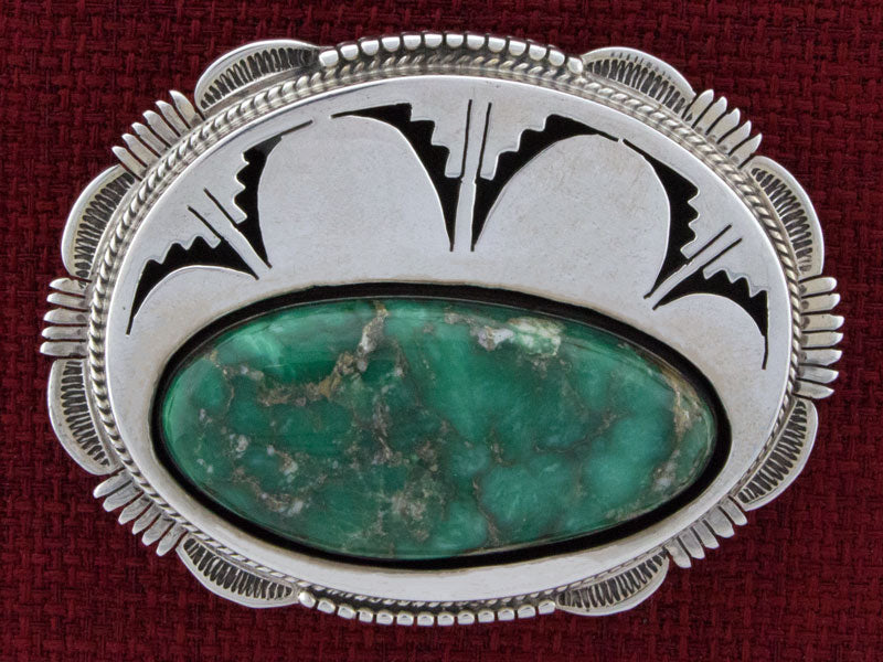Sterling Silver Shadowbox Belt Buckle Set With An Impressive Natural Variscite Stone.  Masterfully Handmade And Designed By Navajo Artist BENNIE RATION.