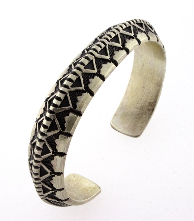 "Old Style" Solid Ingot Sterling Silver Triangulated Bracelet Masterfully Handmade And Designed By Navajo Artist CALVIN MARTINEZ.