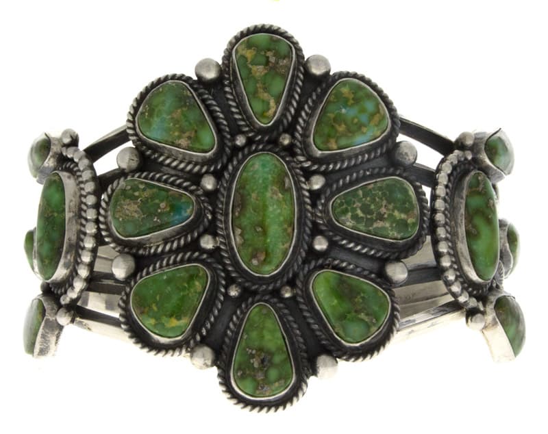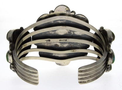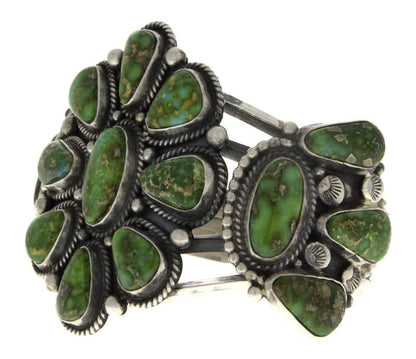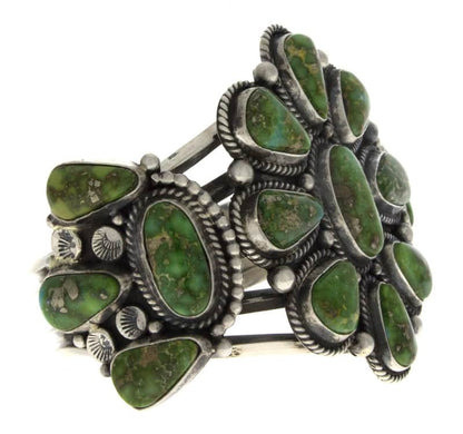 "Old Style" Sterling Silver Bracelet Set With A Cluster Of 17 Sonoran Gold Turquoise Stones. Masterfully Handmade And Designed By Navajo Artist TYLER BROWN.