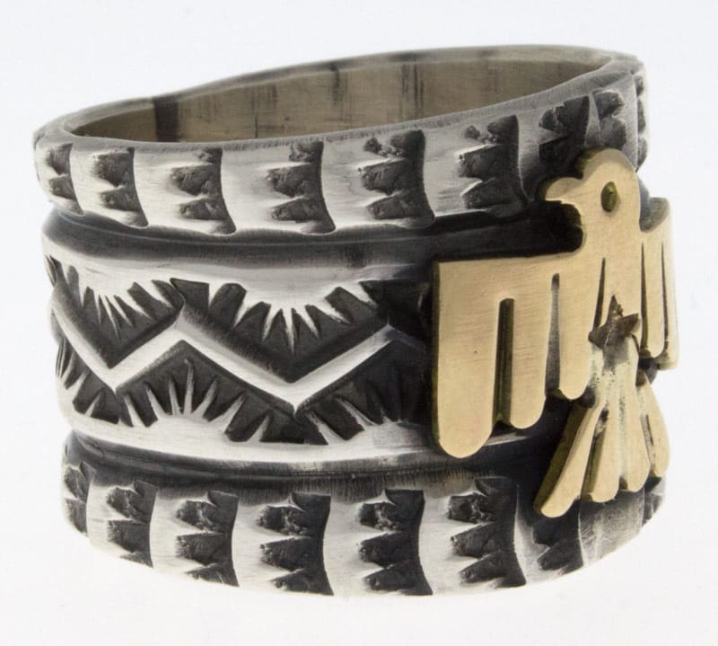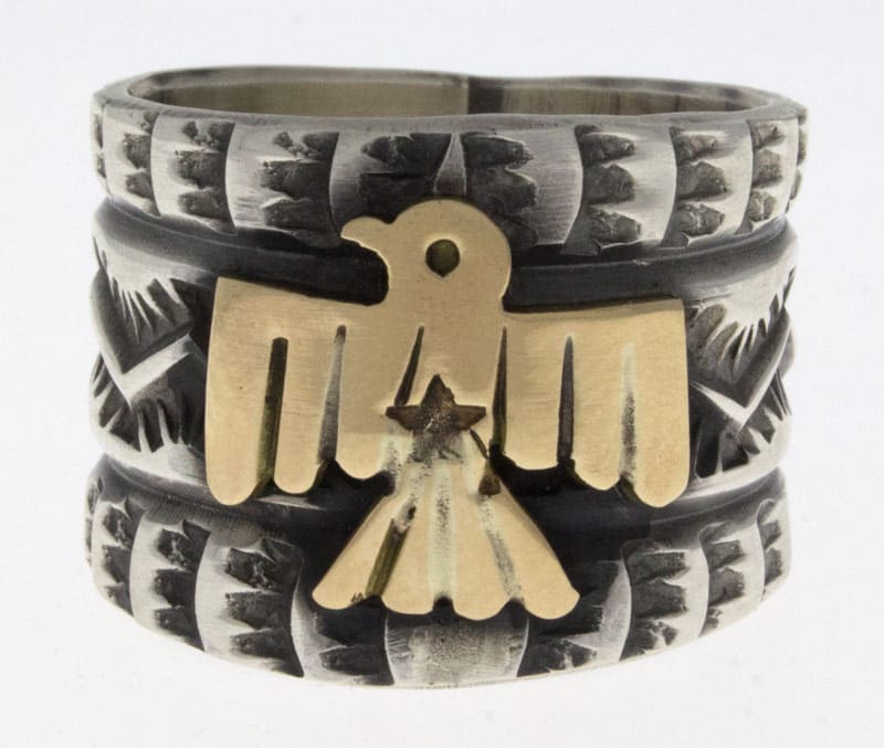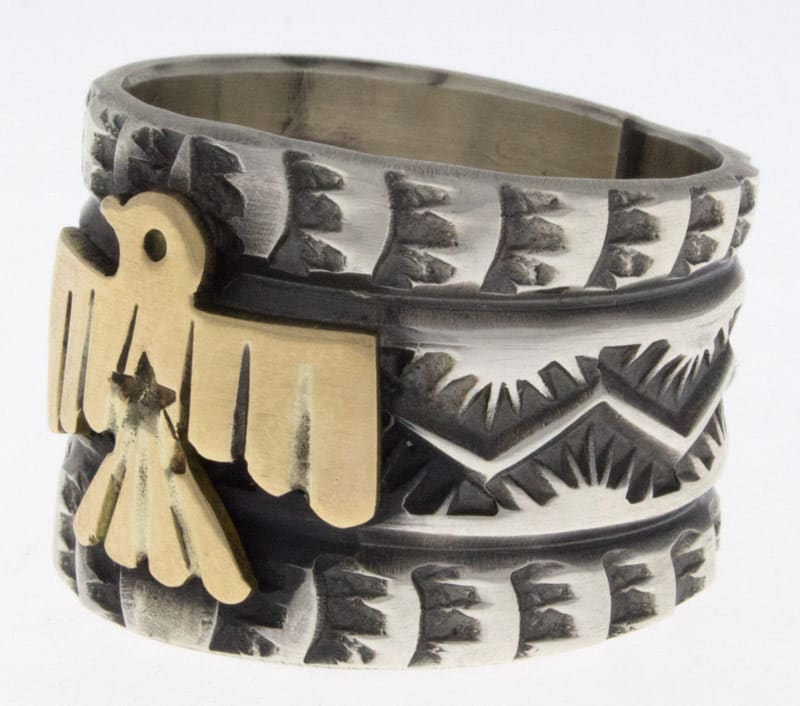 Size 11.5 Sterling Silver Ring With 14k Gold Thunderbird Appliqué.  Masterfully Handmade And Designed By Navajo Artist SUNSHINE REEVES.