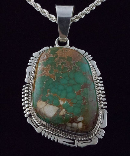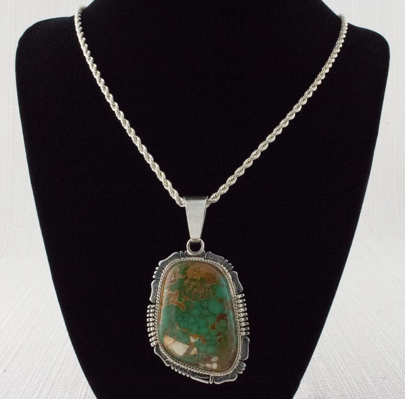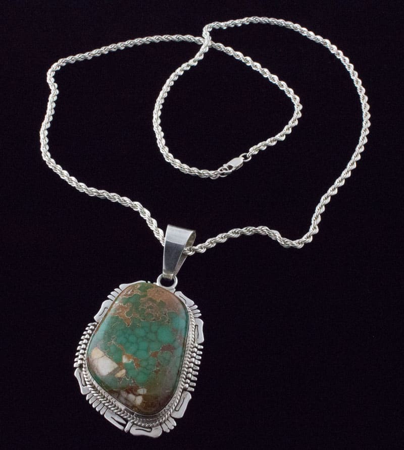 24" Length Sterling Silver Braided Cable Chain Necklace Featuring A Sterling Silver Pendant Set With A Natural Royston Turquoise Stone.  Pendant Masterfully Handmade And Designed By Navajo Artist BENNIE RATION.