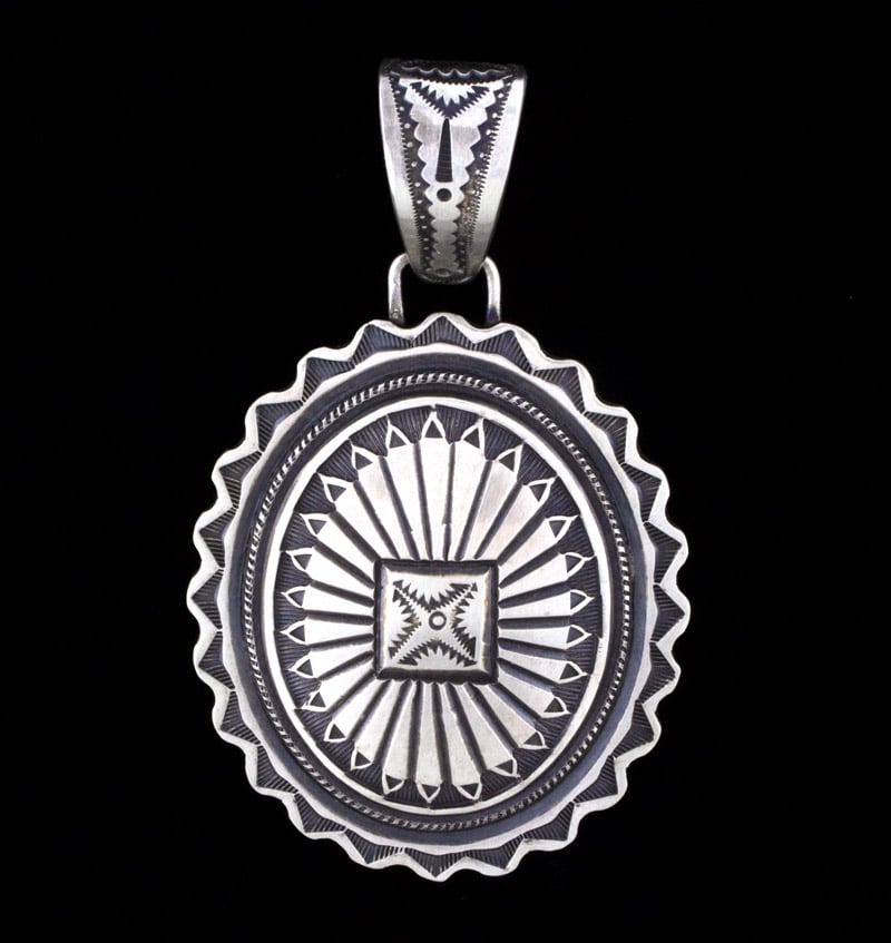 "Old Style" Ingot Sterling Silver Concho Style Pendant Masterfully Handmade And Designed By Navajo Artist CALVIN MARTINEZ.