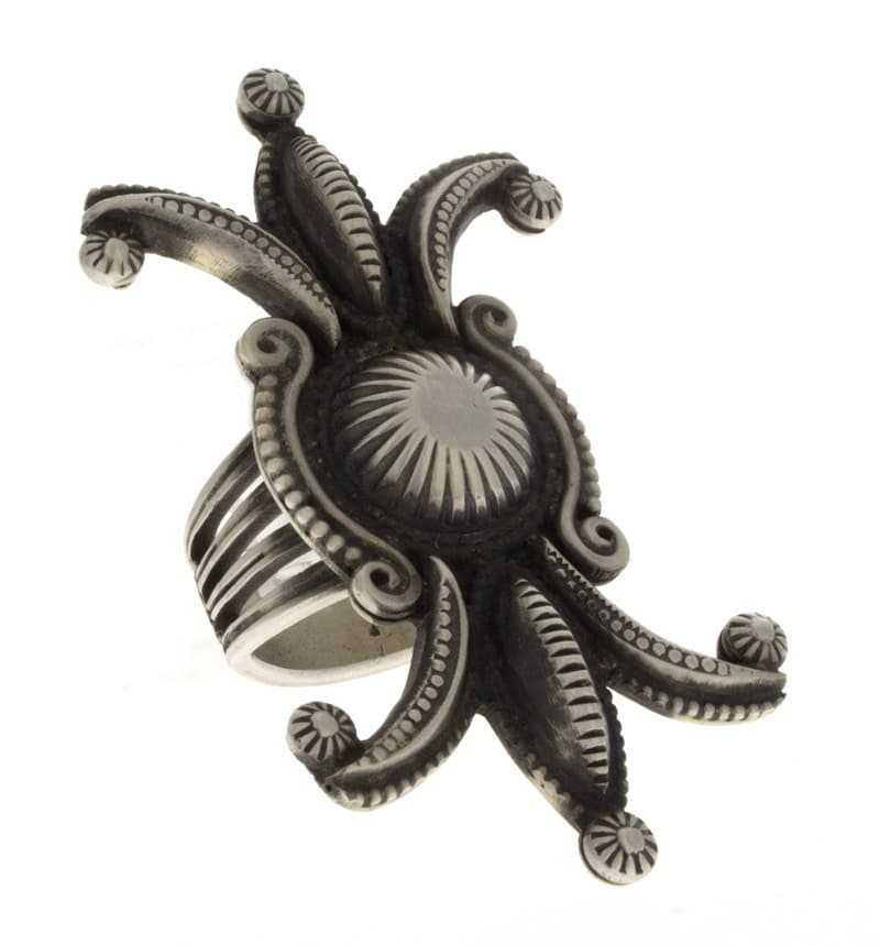 • Technique: Extensive Stamp Work, Saw Work, Satin Finish, Oxidized Background