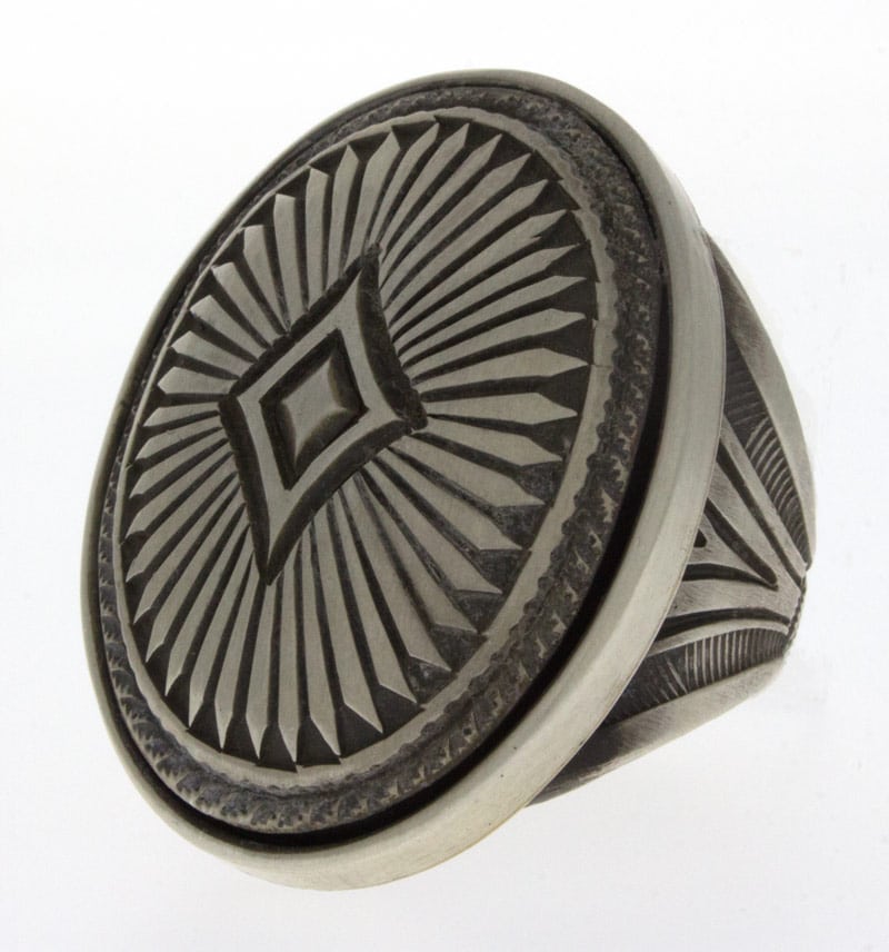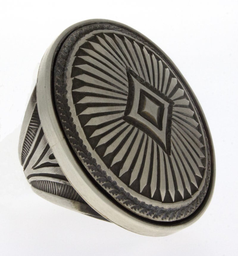 Size 11 "Old Style" Heavy Gauge Ingot Sterling Silver Ring In A Modified Shadowbox Design.  Masterfully Handmade And Designed By Navajo Artist CALVIN MARTINEZ.