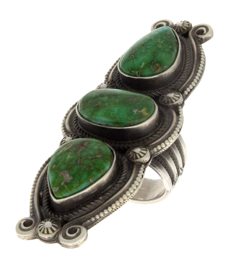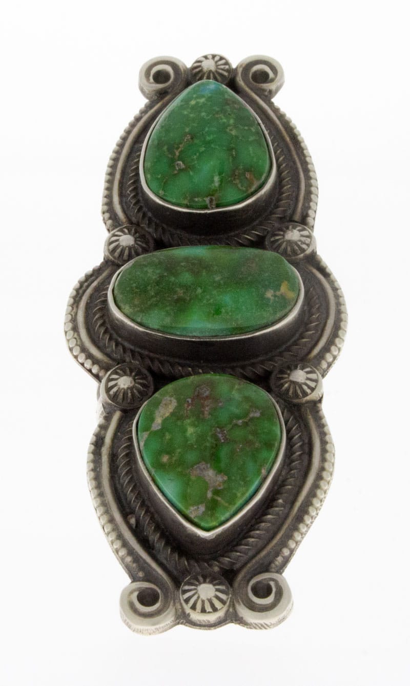Size 8.5 "Old Style" Ingot Sterling Silver Statement Ring Set With 3 Vertically Stacked Sonoran Gold Turquoise Stones.  Masterfully Handmade And Designed By Navajo Artist CALVIN MARTINEZ.