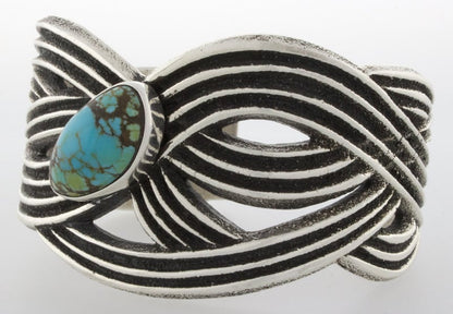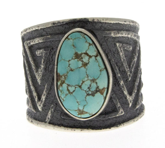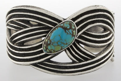 Tufa Stone Cast Sterling Silver Bracelet Set With A Natural Turquoise Mountain Turquoise Stone. Masterfully Handmade And Designed By Navajo Artist AARON ANDERSON. Bracelet Comes With Original Tufa Stone Used By The Artist.