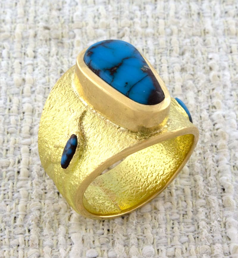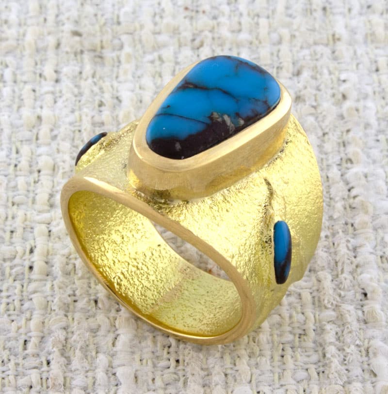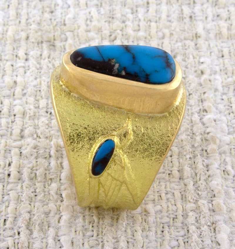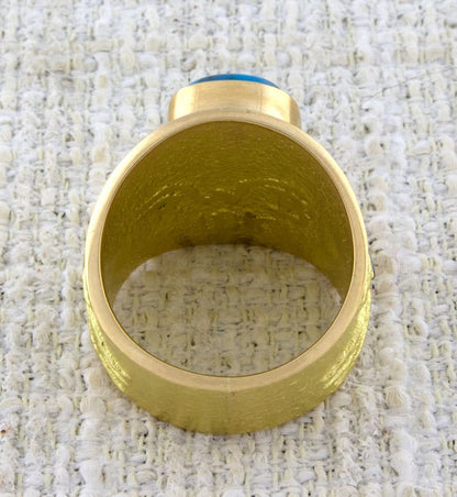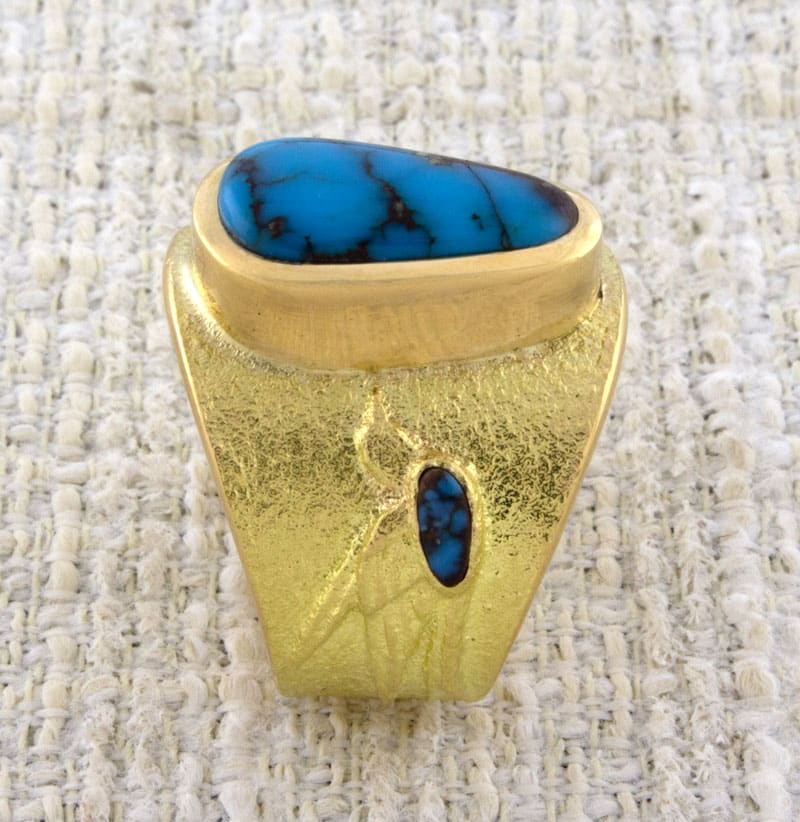 Tufa Cast Solid 18K Gold Ring With High Grade Natural Bisbee Turquoise
