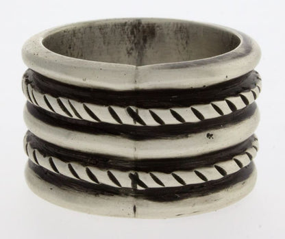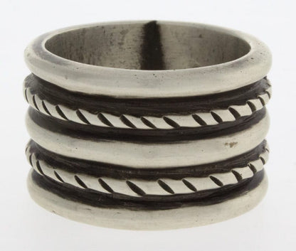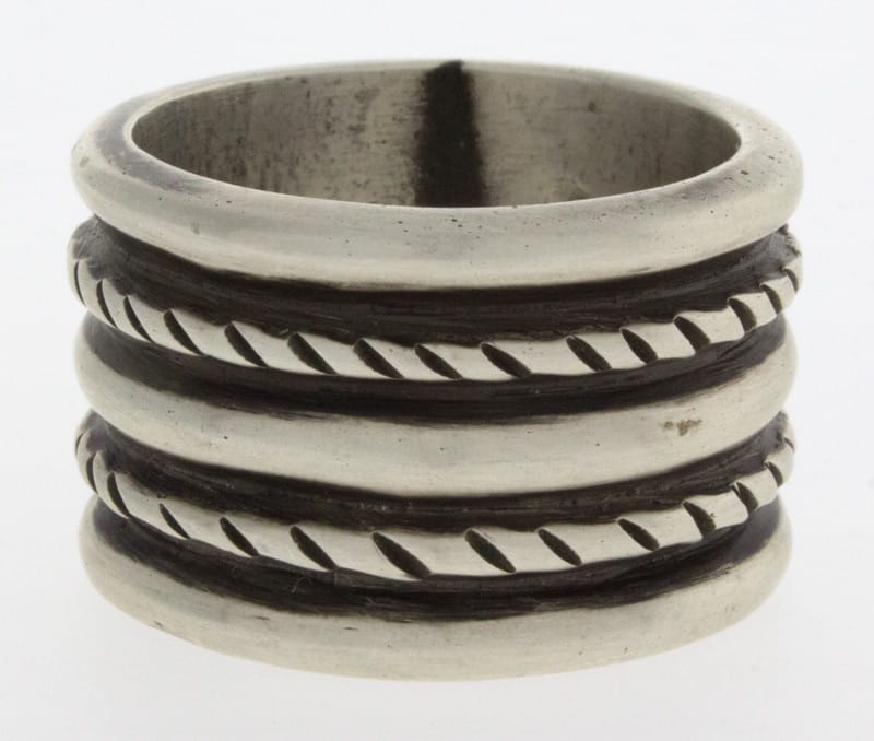 Size 12 Tufa Stone Cast Sterling Silver Double Band Ring Masterfully Handmade And Designed By Navajo Artist AARON ANDERSON.